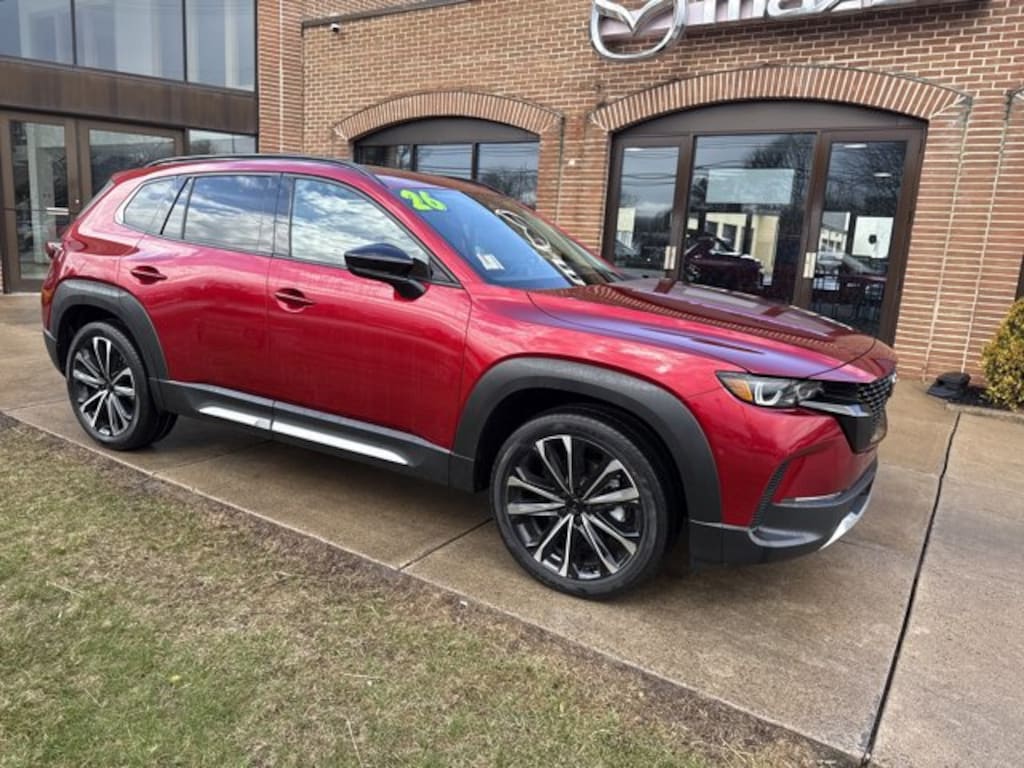 Our boldly designed 2026 Mazda CX-50 2.5 Turbo Premium Plus AWD is engineered to do more in Soul Red Crystal Metallic! Powered by a TurboCharged 2.5 Liter 4 Cylinder serving up 227hp to a paddle-shifted 6 Speed Automatic transmission for muscular modern capability. Also known for its responsive handling on the pavement or off, this All Wheel Drive SUV is eager to explore and achieves nearly 29mpg on the highway. Our CX-50 is at the center of attention with its power sunroof, adaptive front LED lighting, 20-inch wheels, a power liftgate, dual exhaust outlets, and heated power-folding mirrors.
