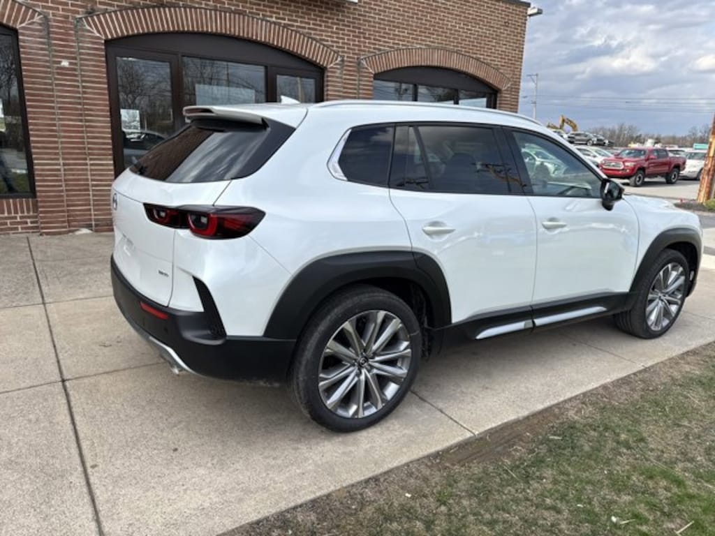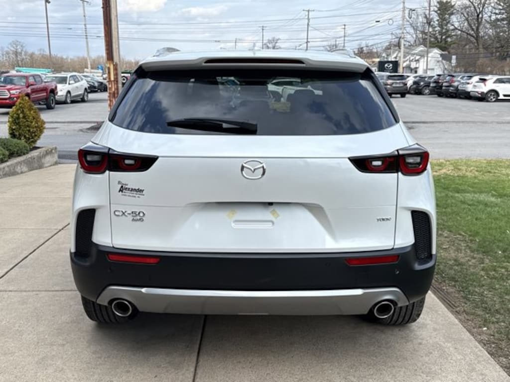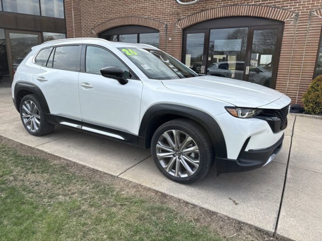 Our boldly designed 2026 Mazda CX-50 2.5 Turbo Premium Plus AWD is engineered to do more in Wind Chill Pearl! Powered by a TurboCharged 2.5 Liter 4 Cylinder serving up 227hp to a paddle-shifted 6 Speed Automatic transmission for muscular modern capability. Also known for its responsive handling on the pavement or off, this All Wheel Drive SUV is eager to explore and achieves nearly 29mpg on the highway. Our CX-50 is at the center of attention with its power sunroof, adaptive front LED lighting, 20-inch wheels, a power liftgate, dual exhaust outlets, and heated power-folding mirrors.
