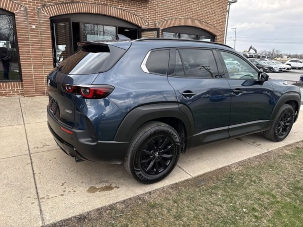 The sporty styling of our 2026 Mazda CX-50 Hybrid Premium eAWD looks fantastic in Ingot Blue Metallic! Powered by a 2.5 Liter 4 Cylinder paired with three Electric Motors for a combined 219hp to an advanced CVT with multiple drive modes. Thanks to the responsive suspension, you can seek out twisty back roads confidently, and this All Wheel Drive SUV scores nearly 38mpg on the highway. Bold and sophisticated, our Premium features adaptive front LED lighting, a power liftgate, heated power mirrors, sunroof, dual exhaust outlets, and eye-catching alloy wheels.