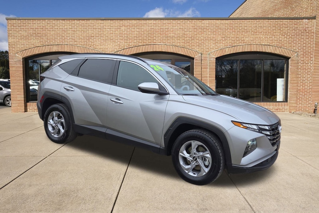 With a daring design, our One Owner 2024 Hyundai Tucson SEL AWD helps you hustle from workday to weekend in Shimmering Silver! Powered by a 2.5 Liter 4 Cylinder serving up 187hp matched to an 8 Speed SHIFTRONIC Automatic transmission for a rewarding driving experience. The athletic suspension helps you enjoy your travels even more, and this All Wheel Drive SUV returns nearly 29mpg on the highway. Our Tucson's bold body sculpting adds a sophisticated look that shows off LED lighting, roof rails, a hands-free liftgate, a rear spoiler, heated power mirrors, and alloy wheels.