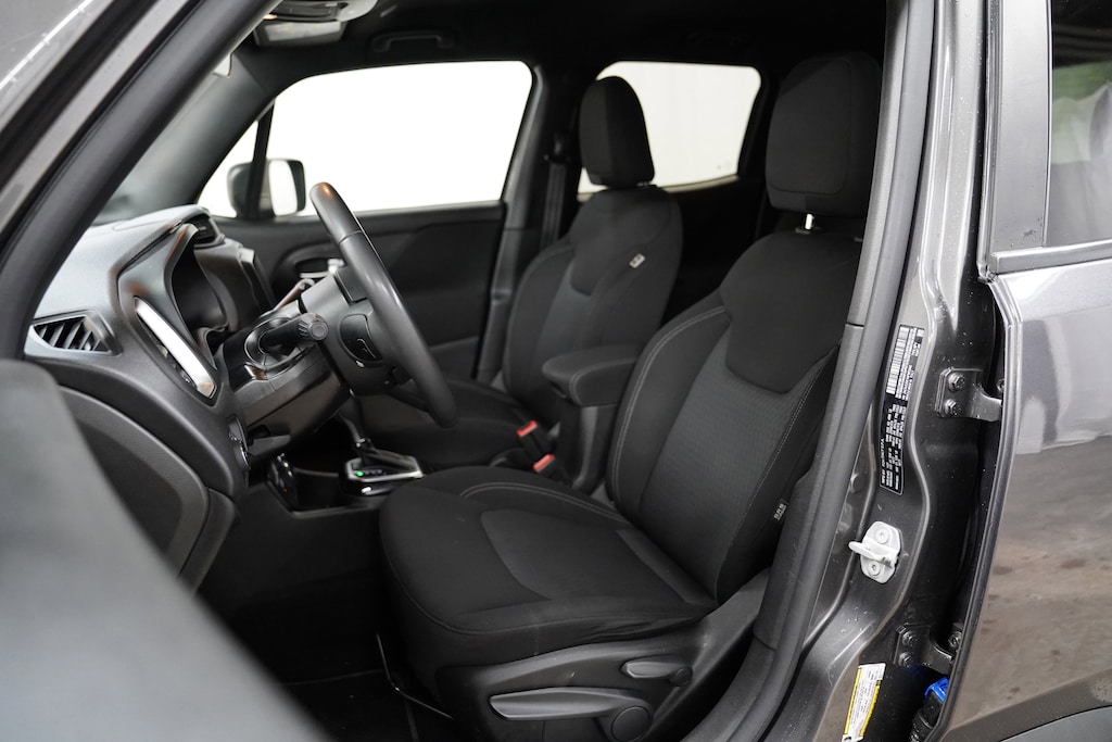 Inside, the Latitude trim provides a refined and comfortable cabin designed for everyday life. Premium cloth seating, a leather-wrapped steering wheel, and thoughtful interior finishes create a modern feel. With seating for five and flexible 60/40 split-folding rear seats, the Renegade easily adapts to passengers or cargo. The elevated seating position offers excellent visibility, while clever storage solutions throughout the cabin help keep everything organized.