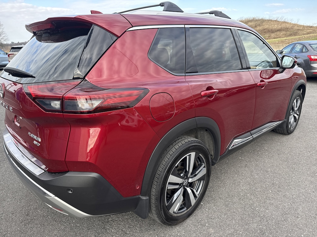 Scarlet Ember Tintcoat 2023 Nissan Rogue Platinum AWD CVT with Xtronic 1.5L I3 Turbocharged DOHC 12V LEV3-ULEV50 201hp 4 WHEEL DRIVE/ALL WHEEL DRIVE, SUNROOF/MOONROOF, NAVIGATION, FRESH TRADE, CLEAN CARFAX, SERVICED HERE, FREE LIFETIME STATE INSPECTIONS, ONLY AT BLAISE ALEXANDER CHEVY GMC OF SELINSGROVE, AWD, 10 Speakers, 19" Aluminum Alloy Wheels, Air Conditioning, AM/FM radio: SiriusXM, Automatic temperature control, Heads-Up Display, Navigation system: NissanConnect Navigation, Platinum Premium Package, Power driver seat, Power moonroof, Rear Heated Seats, Rear window defroster, Remote keyless entry, Steering wheel mounted audio controls, Tri-Zone HVAC.
